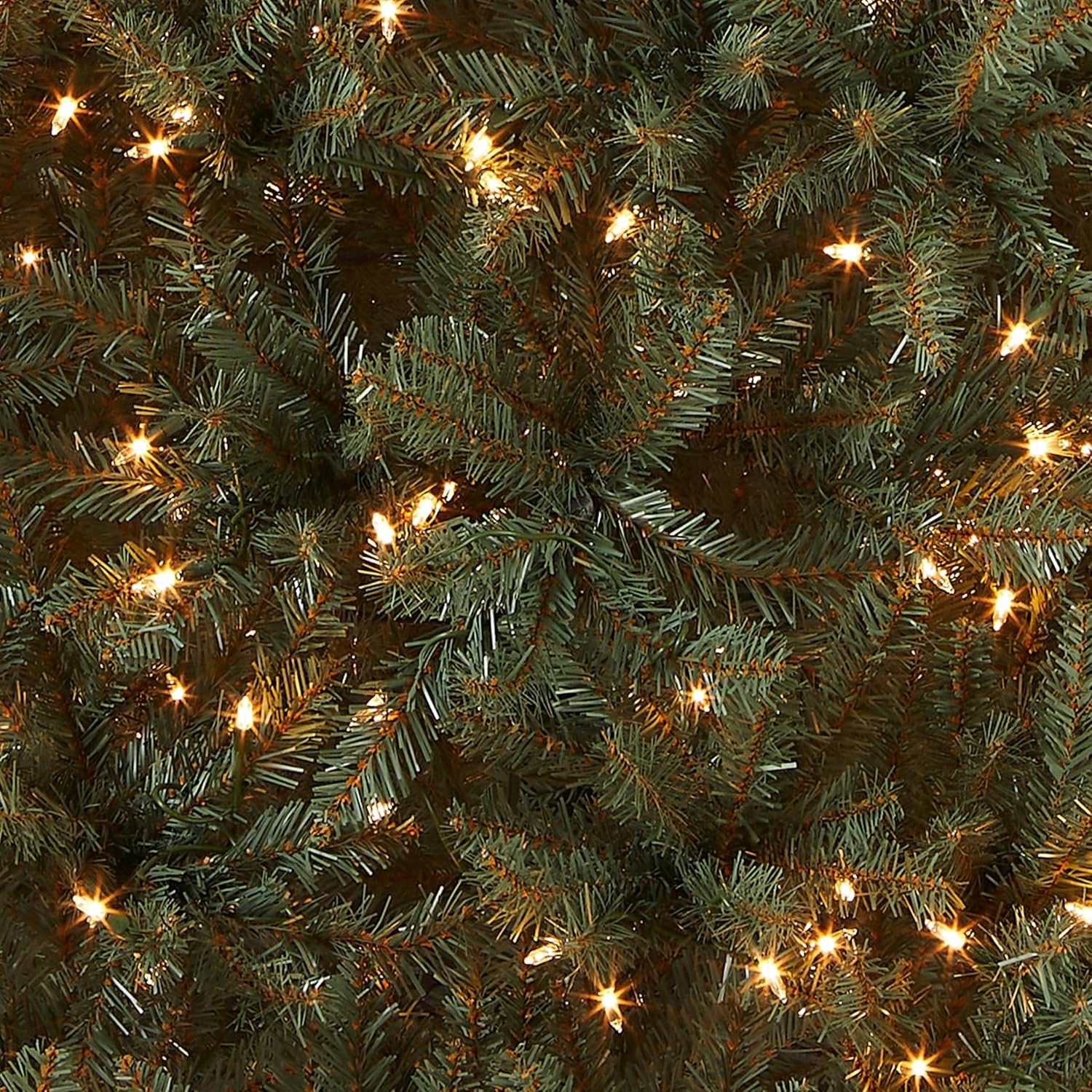 Transform your home into a winter wonderland with National Tree Company's Pre-Lit Artificial Christmas Tree. This majestic Dunhill Fir tree is 7.5 feet tall and 59 inches in diameter at the bottom, giving the tree a wide profile. Friends and family alike will marvel at how the tree closely mimics those outside. Made to look and feel lifelike, the stunning realism of the tree is defined by its close attention to detail, featuring hundreds of individually crafted branch tips that make up the wide, full-bodied branches that create space for your lights and ornaments. The tree is designed with a hinged branch system that allows the branches to swing down for a quick and simple set-up and fold back in for easy storage. Set aside 45-60 minutes after assembly to properly shape the tree by peeling back the branches and pulling the tips apart to give the branches a more full-bodied look. This fantastically festive tree is strung with 750 white UL lights prior to packaging and includes a sturdy, metal base for a more convenient setup. The lights operate individually, so if the bulb lens has not been cracked or broken, the light set will continue to illuminate except for any individual bulbs that are not working. Before dressing the tree in twinkling lights and glistening ornaments, consider placing it in a living room or dining area where it can be viewed from multiple angles and does not block any entryways. Constructed with sturdy, high quality materials and hypo-allergenic, fire-resistant needles, this tree is built to bring holiday cheer for years to come. At National Tree Company, we strive to create high quality Christmas decorations to help you transform your home so you can keep making every holiday moment magical.