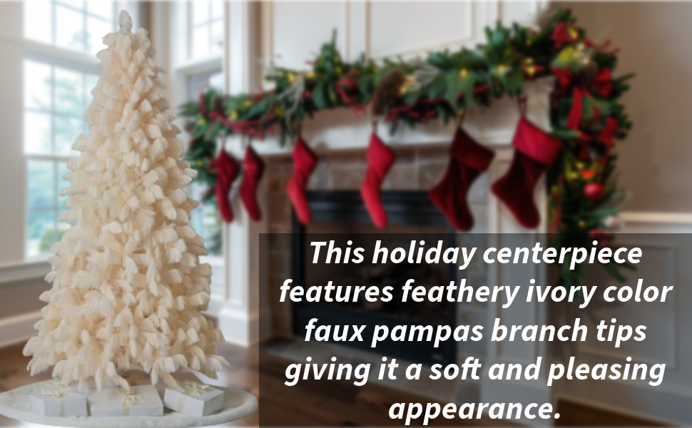 Seasonal LLC Pampas Christmas Tree | 7.5FT | 48" Diameter | Ivory | Hinged Branch Design | 7 Fire-Resistant and Non-allergenic | Folding Metal Tree Stand