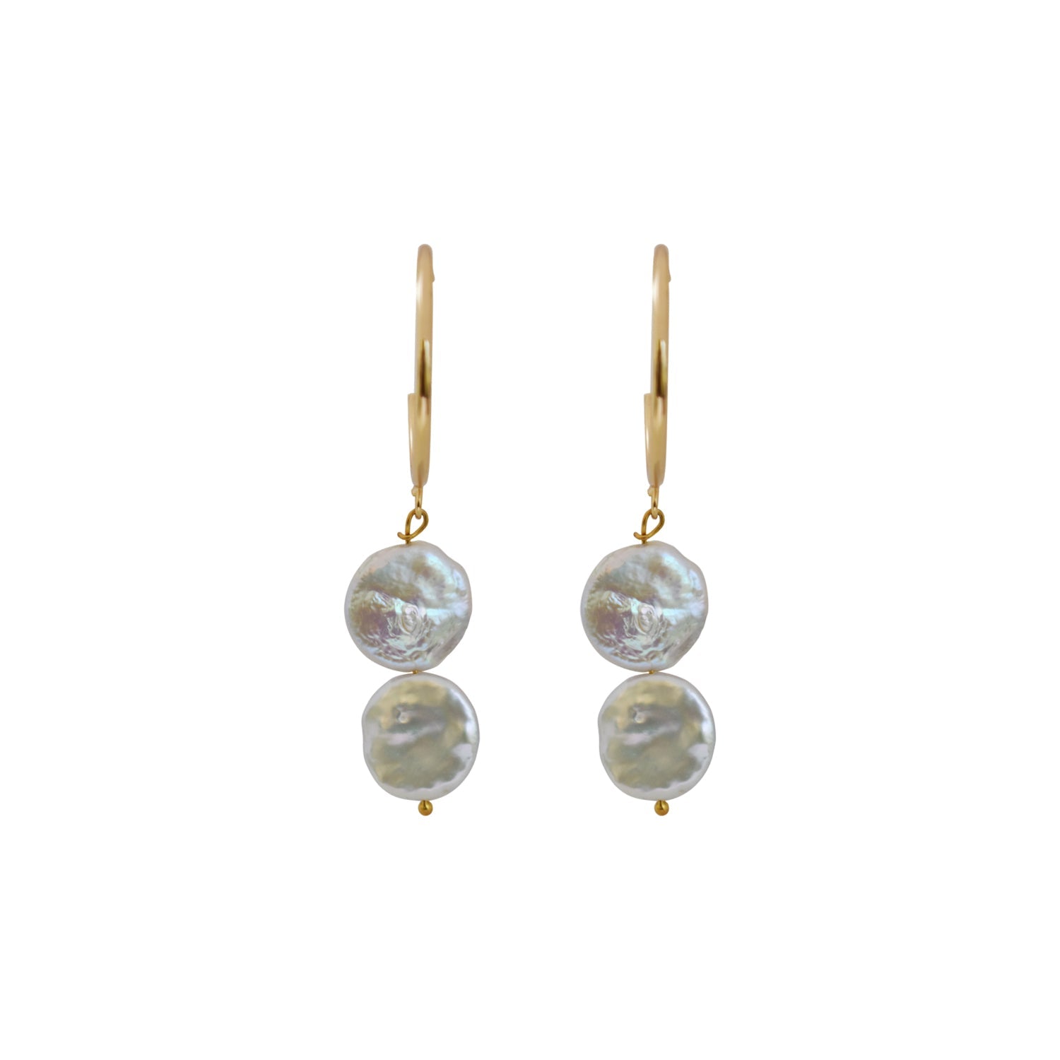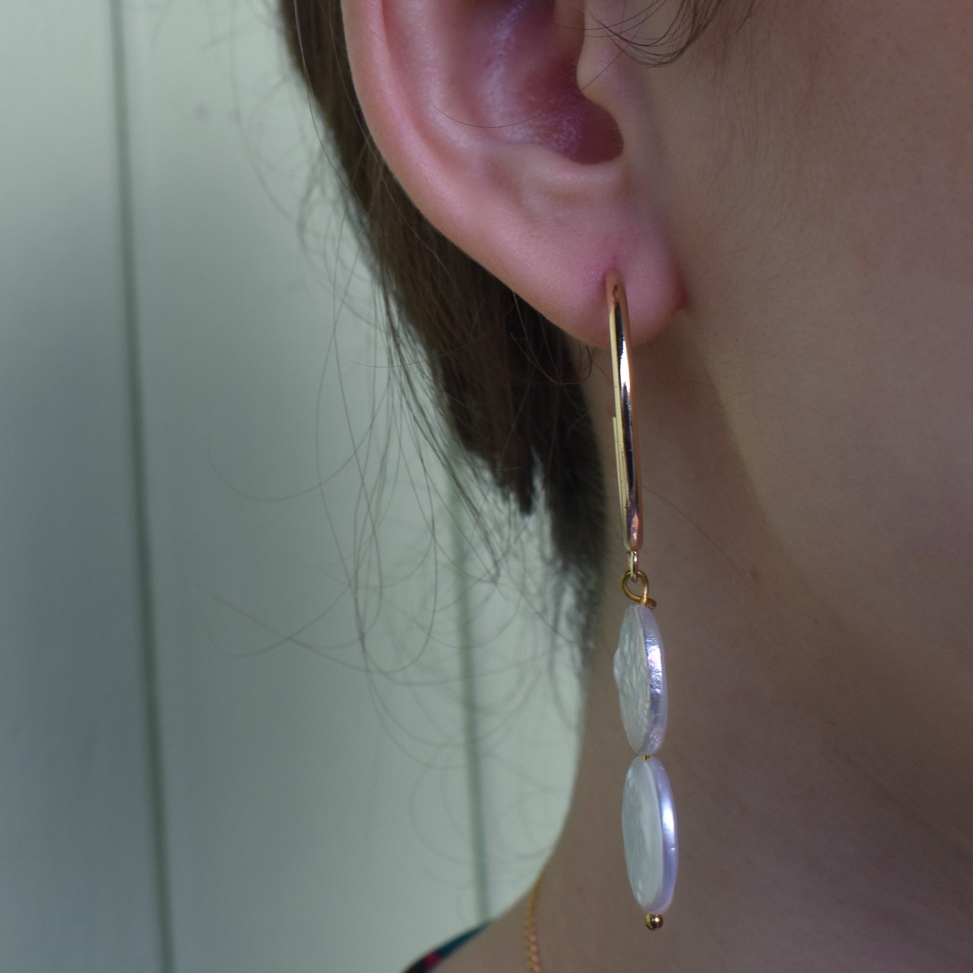 Silver double pearl hoop freshwater pearl earrings | by Ifemi Jewels