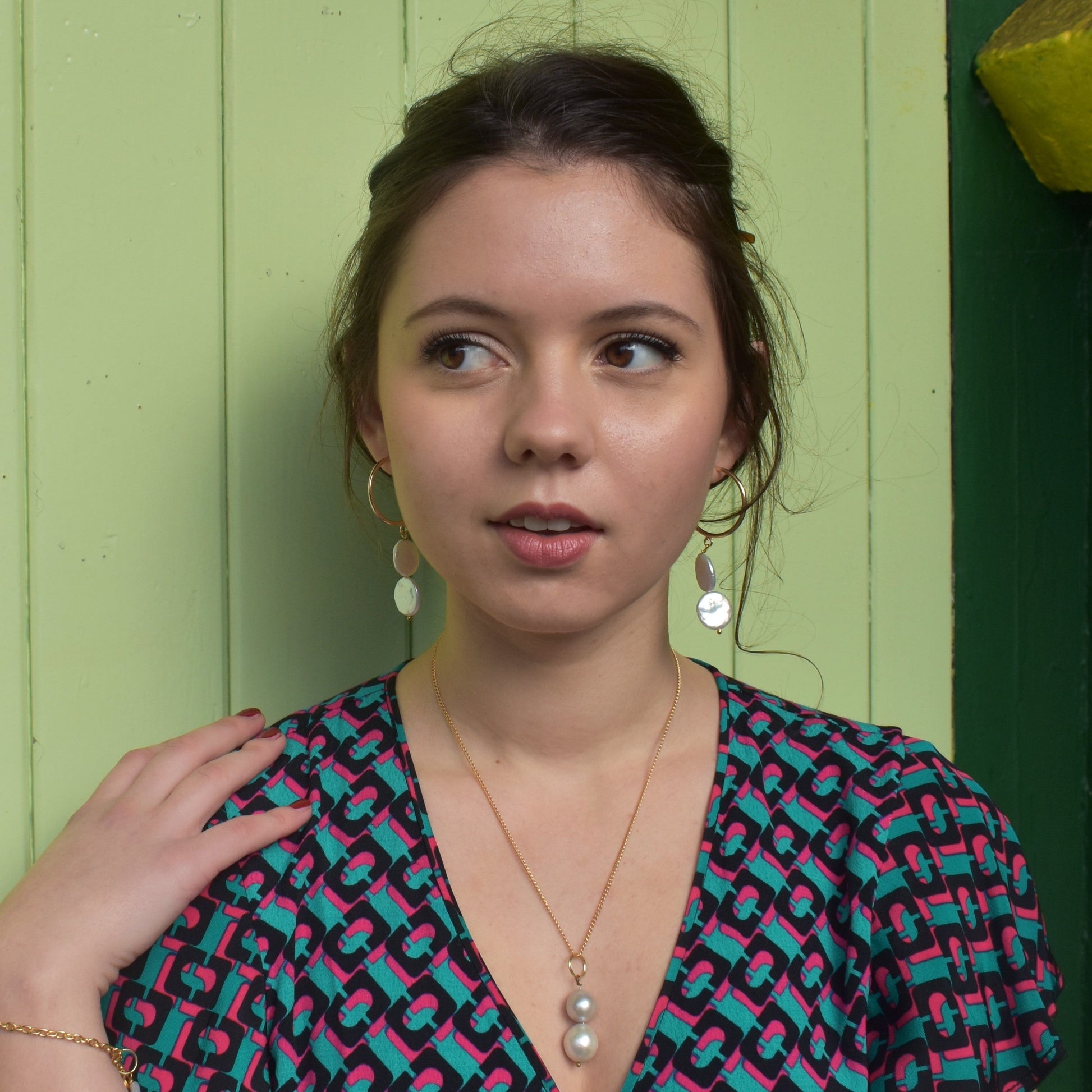 - Product Materials: Brass necklace and findings, freshwater pearls